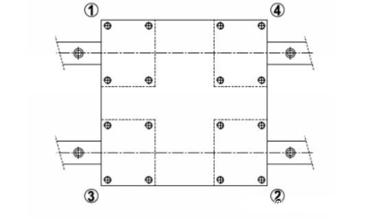 3。鎖緊裝配螺釘,將滑板按(1)至(4)對(duì)角線順序緊固在滑塊上,如圖所示。