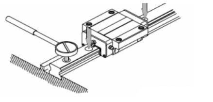 3。試鎖緊裝配螺釘,確認(rèn)螺栓孔是否匹配,并將導(dǎo)軌底部基準(zhǔn)面大致固定在機(jī)床底部裝配面上。